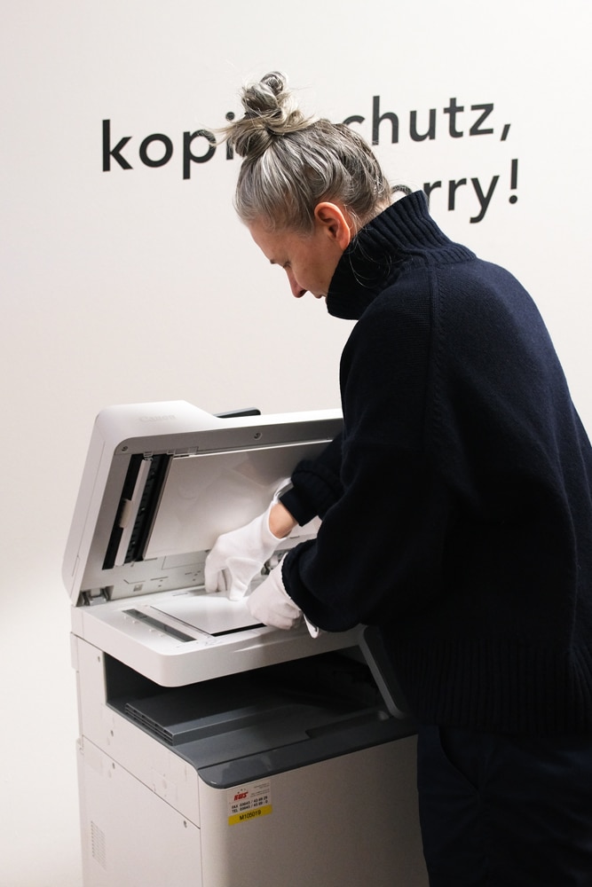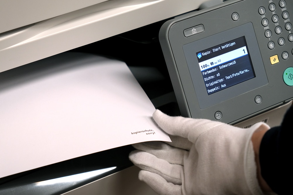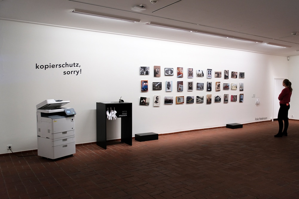 40 Prints auf AluDiond, Anordnung variabel, Kopiergerät, Podest mit Prägezange, Handschuhe